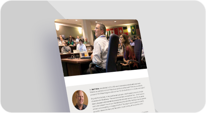 –or ain †’’rien, who attended in ‡…„5, AMP was all about options and actionable experience. “What do we want to do sociallyš What do we want to do professionallyš What do we want to do personallyš ll of those things are addressed here. We talk about them all in a riskfree environment.” Originally from Scotland, he has spent the last eight years in the hiladelphia area and is director of operations for ‹thos‹nergy. “he experiential emphasis is evident from ay „...ll of it was very cleverly designed to demonstrate the concepts that we’ve been learning in class™ žow do people react under pressureš žow can you make decisions in the split of the moment, or how do you make decisions when everything is changing all the timeš his program was really good to make the connection between the theory and the practice, not ˜ust planning but how you take action.” ›elationships were key for onyale ShoŒers (AMP 2’), executive director, wining œillage in the ŒS. “—’ve become a permanent part of a learning community. —t doesn’t end with these five weeks. here’ll be resources, like other alumni who are available to bounce ideas off of and probably make deals with. —t’s truly exciting.” he takeaways for Pierre ermant (AMP 2’), a media executive from ƒelgium, involved being open to feedback and learning from international peers with diverse styles and personalities. “•eadership is learnable, and Wharton’s AMP provides a trusting environment to learn about yourself and improve your leadership skills. hanks to the selfawareness you will gain from being at Wharton, you will be able to build a new leadership model and achieve new challenges.” whartonamp.com 13