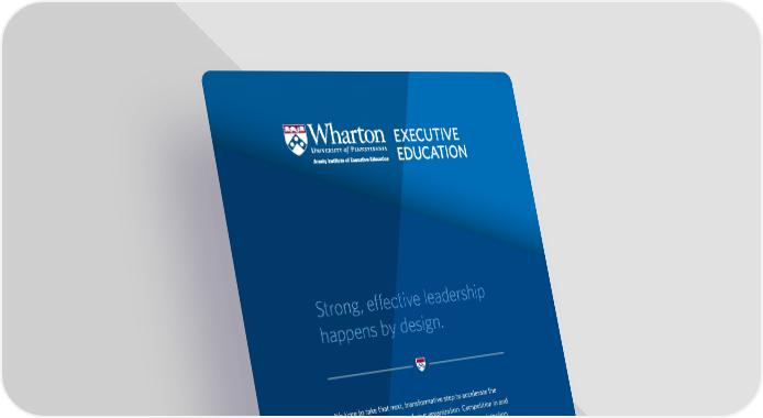 Strong, effective leadership happens by design. ‡t’s ti†e to ta‰e that ne‚t, transfor†ative step to accelerate the traŠectory of your career and your organi‹ation Co†petition in and around the CŒsuite is fierce ‘etting to the top ta‰es fir† intention and a dedicated plan What you need is to i††erse yourself in an intellectually rigorous environ†ent „here business acu†en, financial strategy, innovation capability, and value creation are front and center Understand ho„ you can influence others and effect real and so†eti†es disruptive change This is ho„ you clai† your sta‰e This is leadership by design This is the Wharton Advanced Management Program.